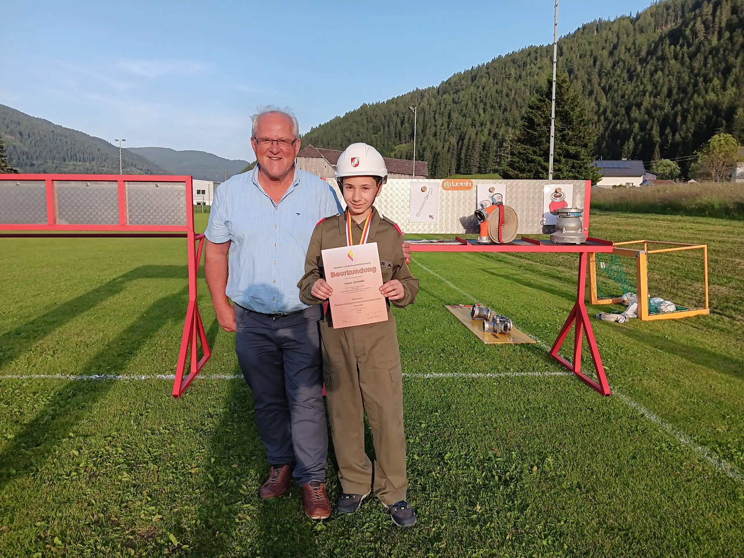 Am Mittwoch den 19.06.2024 besuchte uns Herr Bürgermeister Karl Lessiak am Sportplatz in der Wiederschwing, wo wir unser Training abhielten. Mit großer Freude überreichte er unseren anwesenden Jugendfeuerwehrmitgliedern die Urkunde und das Abzeichen vom Bezirksleistungsbewerb und wünschte allen viel Glück für die Landesmeisterschaft in St. Veit an der Glan, die am Samstag den 22.06.2024 stattfinden.
