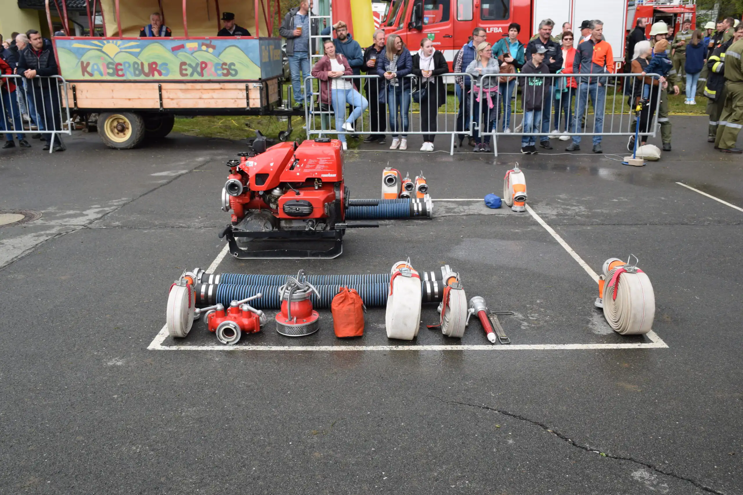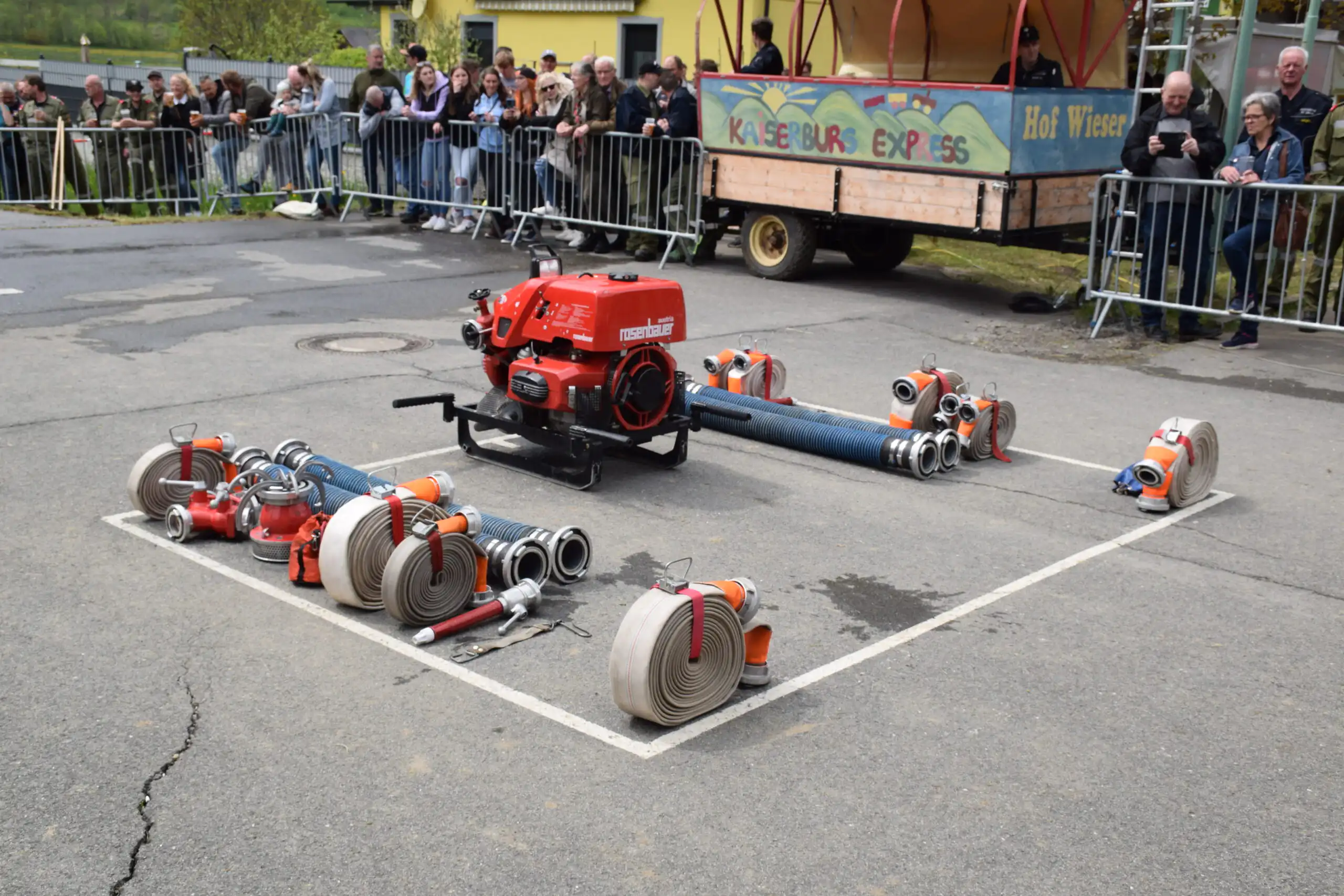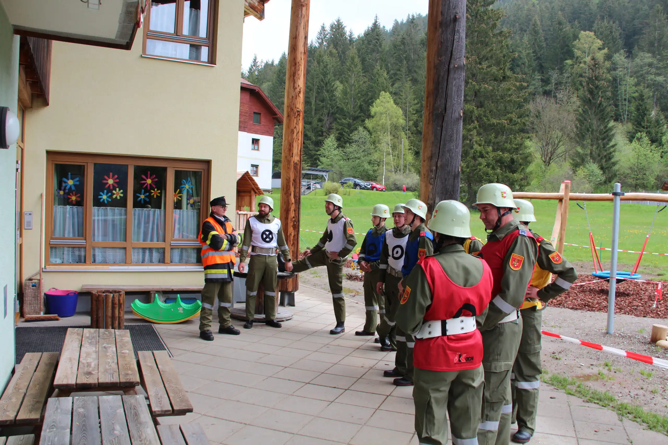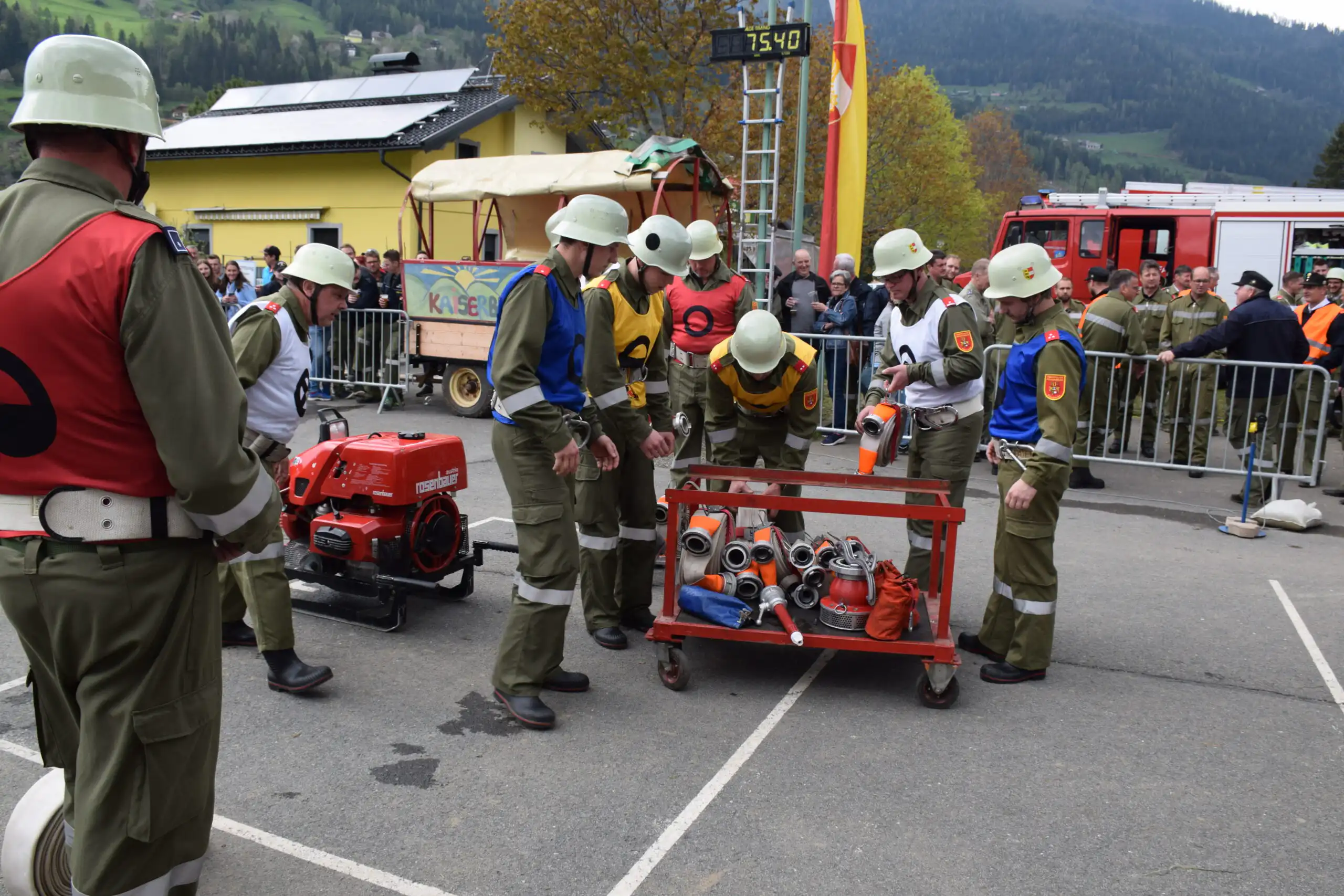 Auch beim Mannschaftsleistungsbewerb wurde nach der Überprüfung Aufgewärmt und die Gerätschaften in Stellung gebracht. Anschließend gab der Gruppenkommandant nach der Meldung an den Bewerbsleiter den Einsatzbefehl.