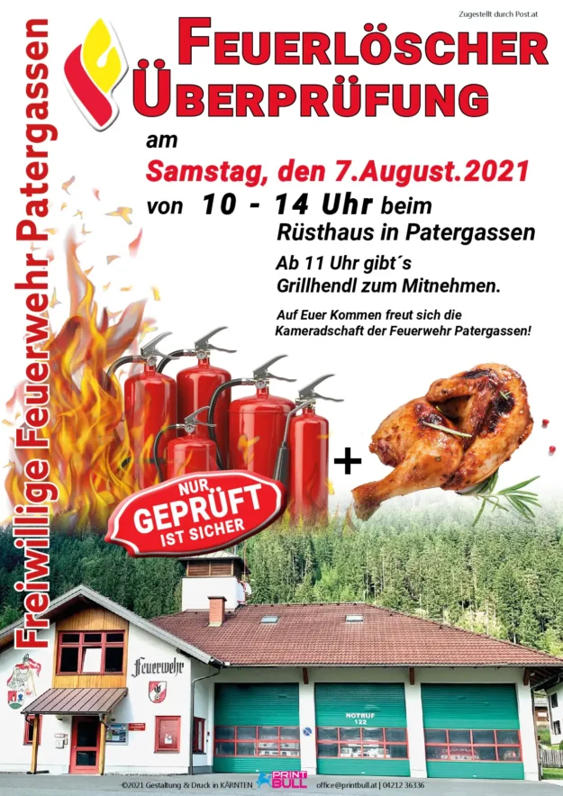 Feuerlöscherüberprüfung vom 07.08.2021 Am 07.08.2021 fand die alljährliche Überprüfung der Feuerlöscher beim Rüsthaus in Patergassen statt. Als Stargast war der “ Iron-Adi “ vor dem Rüsthaus ausgestellt. Das optische und technische Kunstwerk wurde von HPW Engeneering und Arnold Sampl GmbH als Partnerprojekt entwickelt und gefertigt. Nach Absprache mit Herrn Arnold Sampl am 31.07.2021 durften wir…