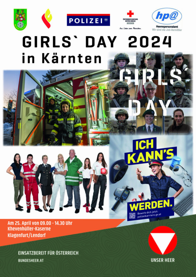 Girls` Day 2025 in Kärnten Girls-Day 2025: Entdecke spannende Berufswelten!  Am Donnerstag, den 24. April 2025, lädt das Österreichische Bundesheer zum Girls-Day 2025 in die Khevenhüller-Kaserne ein! Neben dem Bundesheer sind auch wir von der Feuerwehr, das Österreichische Rote Kreuz, die Polizei und der Zivilschutzverband dabei. Unser Ziel: Mehr Frauen für diese spannenden Berufe und das…
