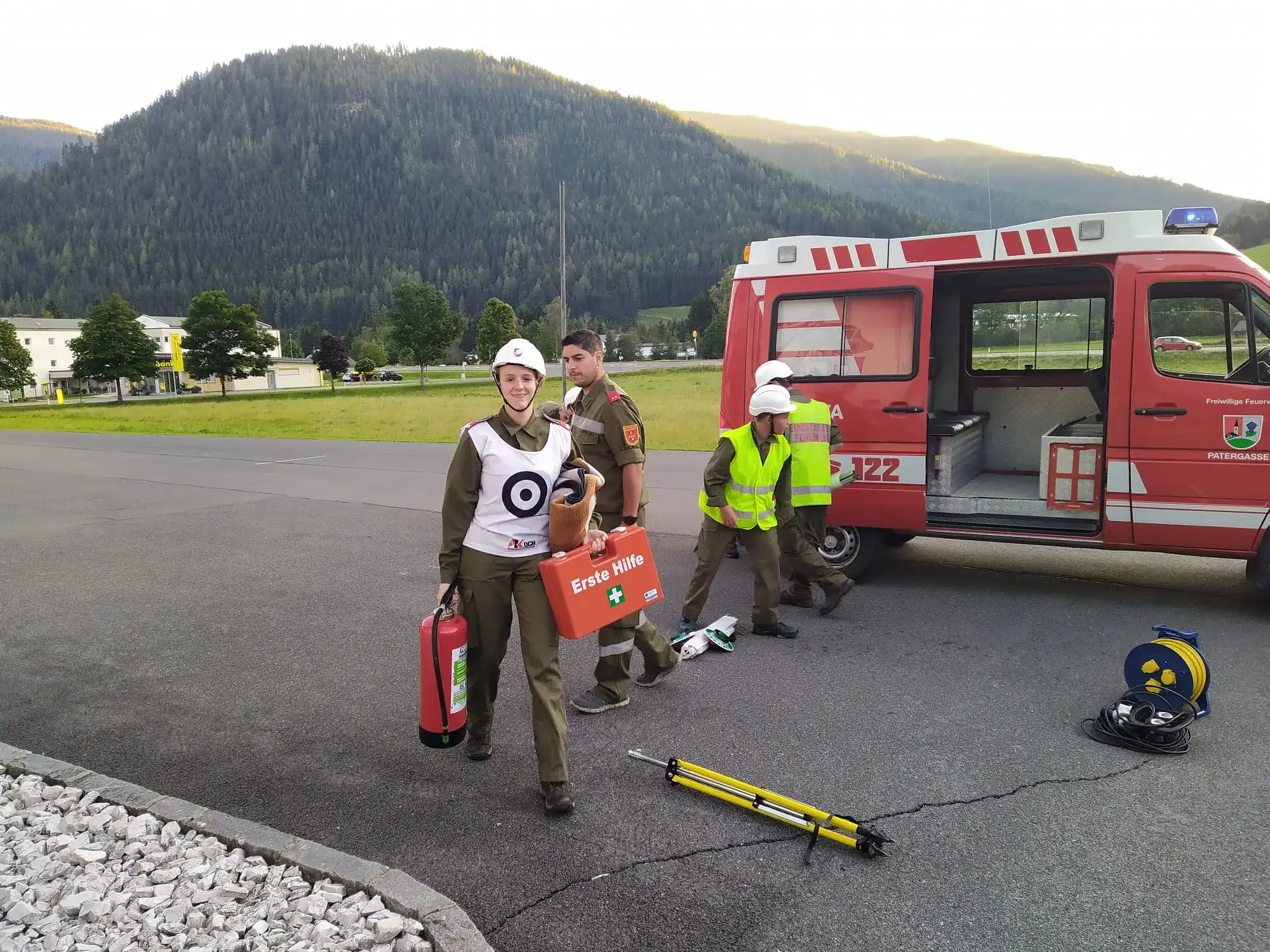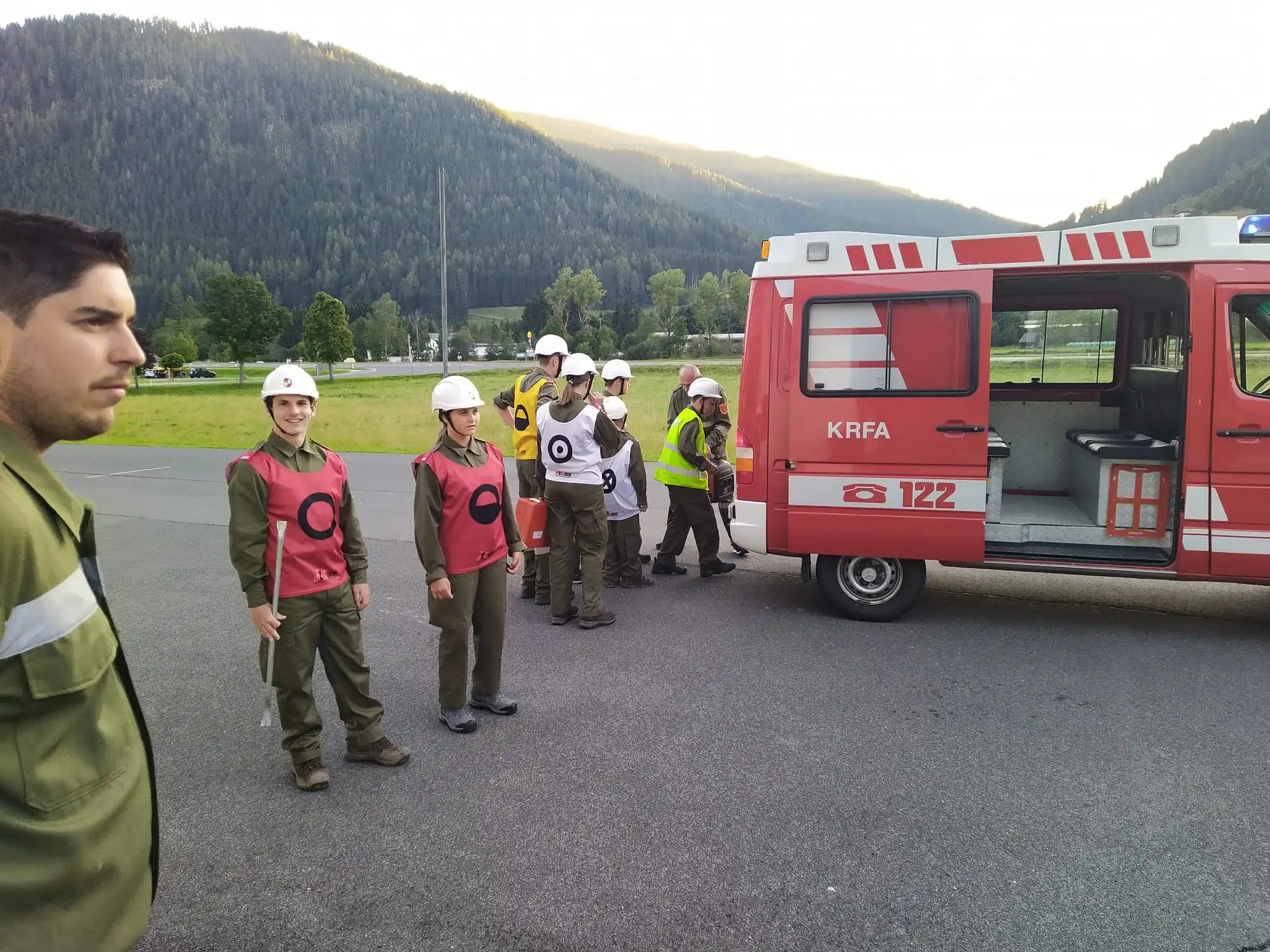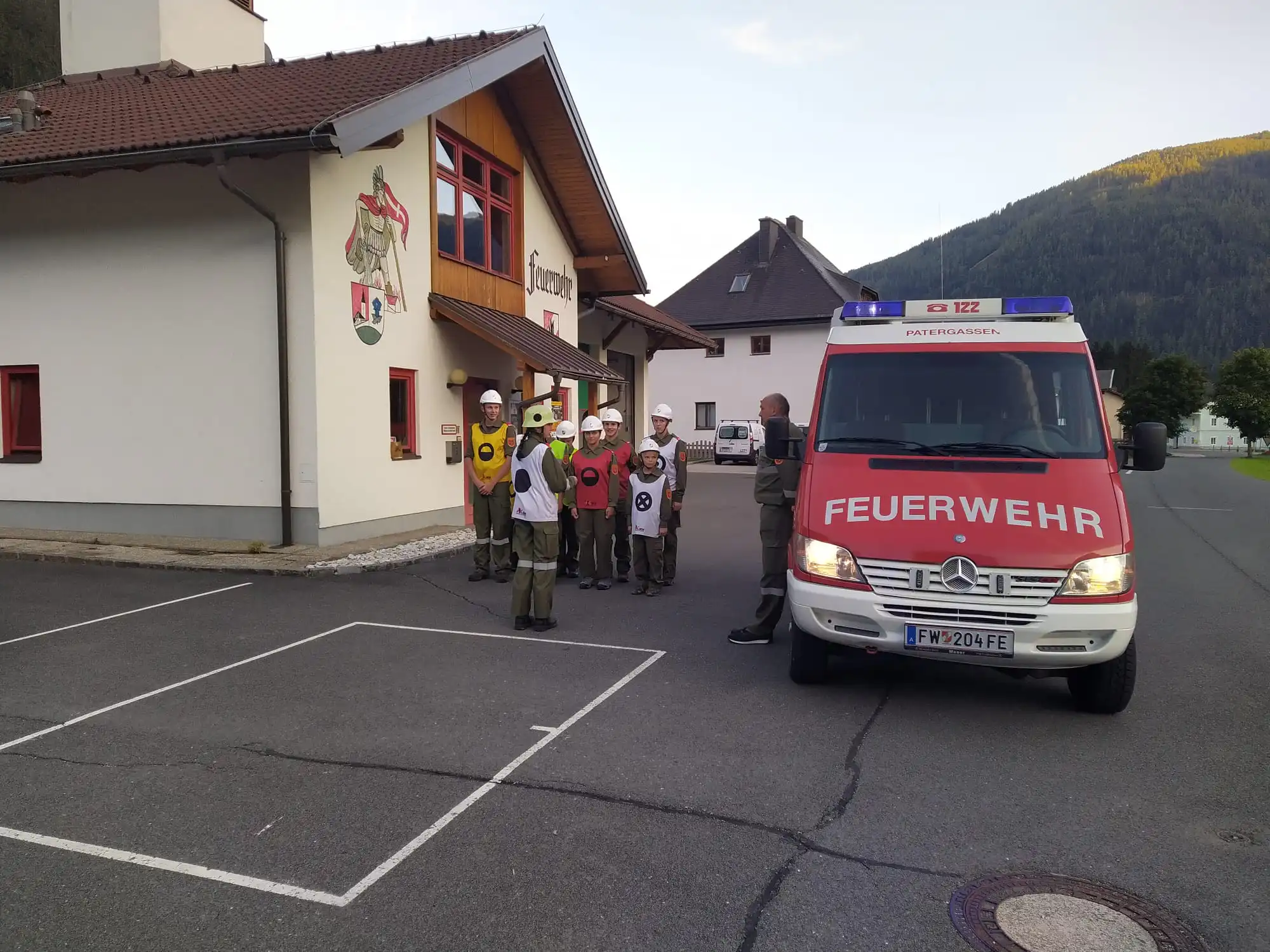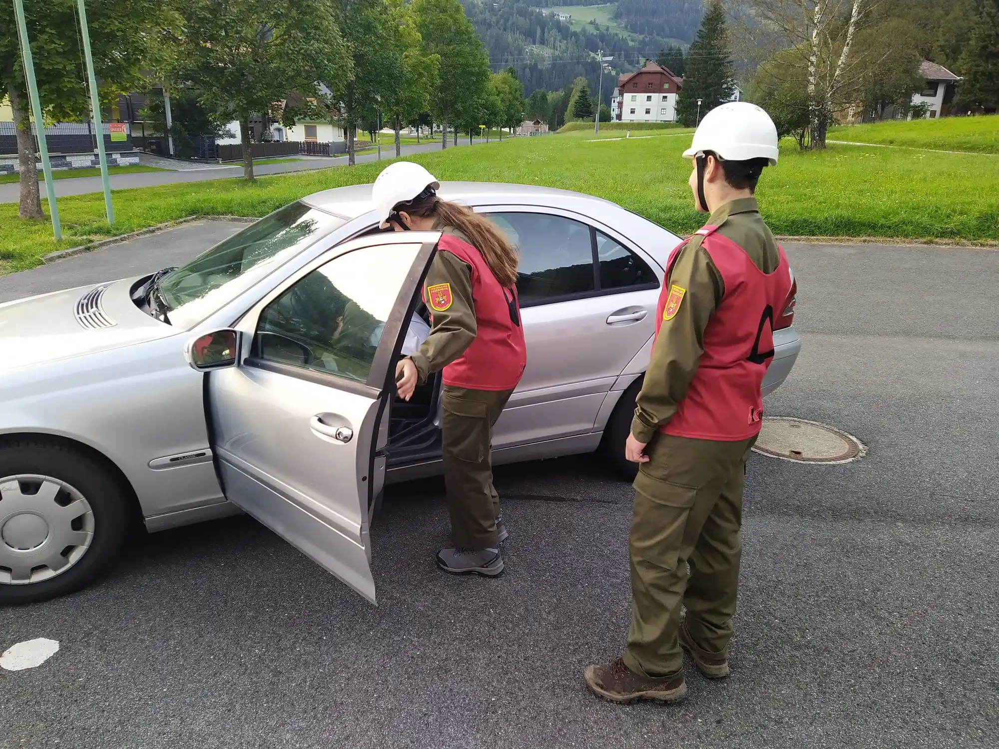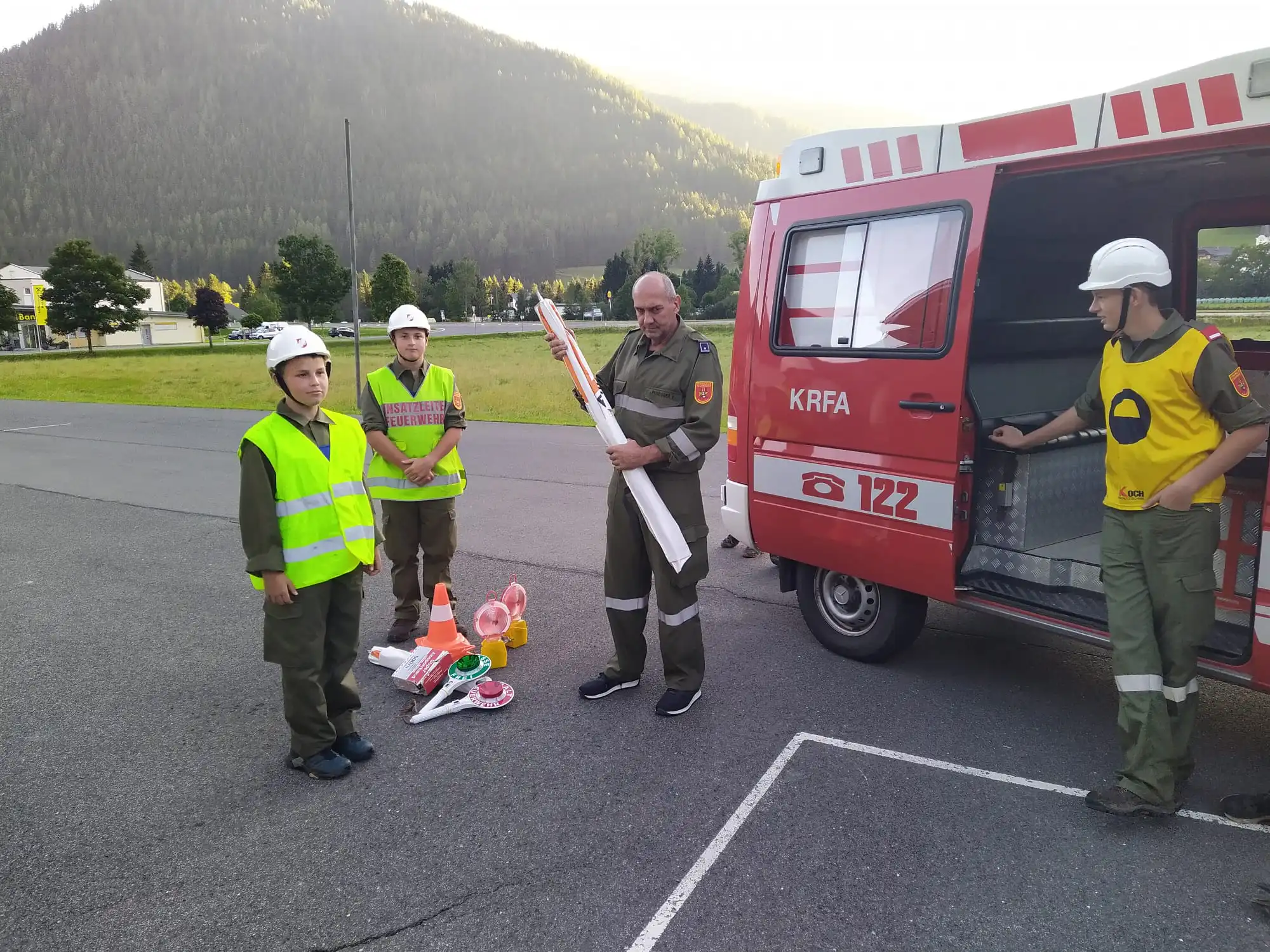 Am Freitag den 05.09.2023 fand erneut eine Übung der Jugendfeuerwehr Patergassen beim Rüsthaus statt. Hier ging es darum, die technische Gruppe im Einsatz abzuarbeiten. Nach einer kurzen Besprechung der Theorie wurde mit den Jugendlichen die einzelen Aufgaben der Mannschaft bzw. der Trupps nacheinander abgearbeitet. Übungsannahme war ein Verkehrsunfall mit einer Bewustlosen Person im Unfallfahrzeug. Nachdem alle einmal die Stationen abgearbeitet hatten, wurde nach den taktischen Nummer eingeteilt und die Jugendlichen mussten je nach Funktion ob Gruppenkommandant; Melder; Maschinist; Rettungstrupp; Sicherungstrupp und Gerätetrupp die technischen Zeichen überziehen. Anschließend wurde mit dem Einsatzfahrzeug die Unfallstelle mit Blaulicht und Folgetonhorn angefahren. Nach einer kurzen Erkundung vom Gruppenkommandant und Melder wurde der Befehl zum Absitzen gegeben. Danach begaben sich die Mannschaft neben das Fahrzeug und nahm Aufstellung.