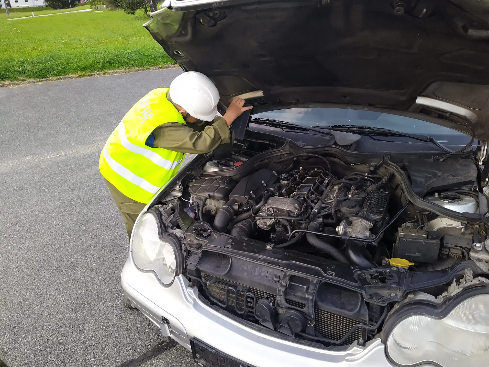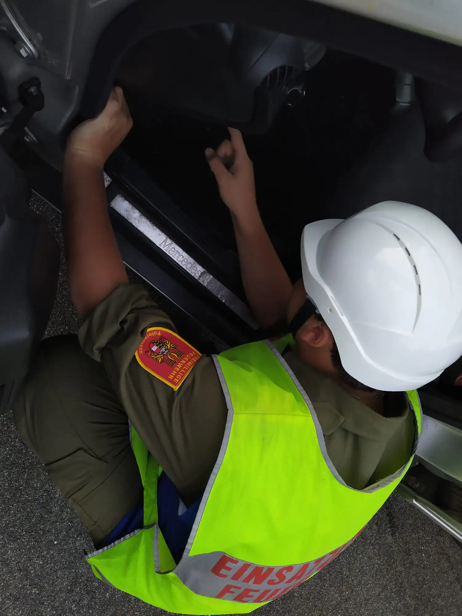 Ebenso wurde noch vom Sicherungstrupp die Motorhaube geöffnet und die Batterie symbolisch abgeklemmt.