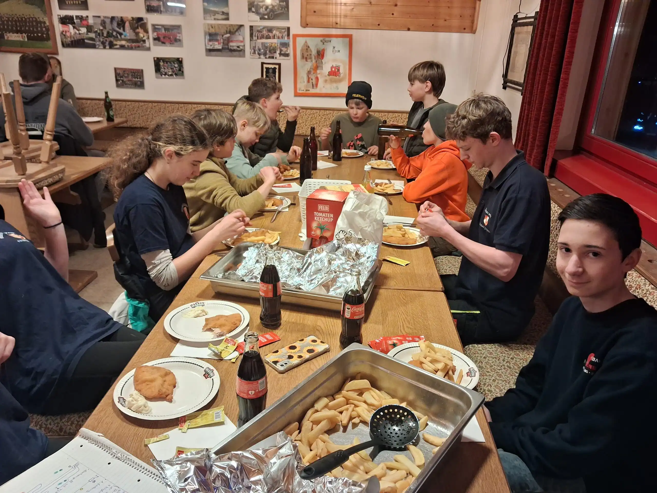 Im Anschluss an die Übung konnten sich die Mitglieder der Jugendfeuerwehr bei Wiener Schnitzel und Backhendl mit Pommes noch eine kleine Stärkung gönnen und den Übungsabend gemeinsam ausklingen lassen.