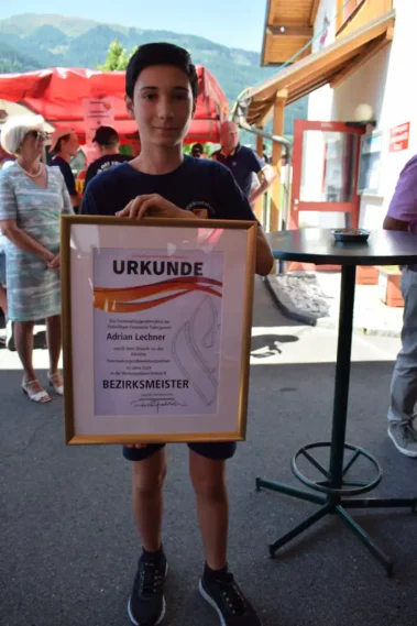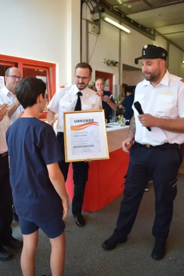 Ebenso fand im Rahmen des Feuerwehrfestes der Freiwilligen Feuerwehr Patergassen, im Beisein von Kommandant OBI Manuel Brunner und Kommandant Stellvertreter BI Christoph Hofer, die feierliche Urkundenübergabe an den Bezirksmeister in Bronze B 2024, JFM Adrian Lechner, statt. Unter den Ehrengästen befanden sich außerdem Bürgermeister Karl Lessiak, Bezirksfeuerwehrkommandant OBR Werner Puggl sowie Bezirksjugendbeauftragte OBI Manuela Unegg. In ihren Ansprachen hoben alle Redner die hervorragende Jugendarbeit in der Freiwilligen Feuerwehr Patergassen hervor, wobei besonders OBI Manuela Unegg die Leistungen der Jugendgruppe würdigte.