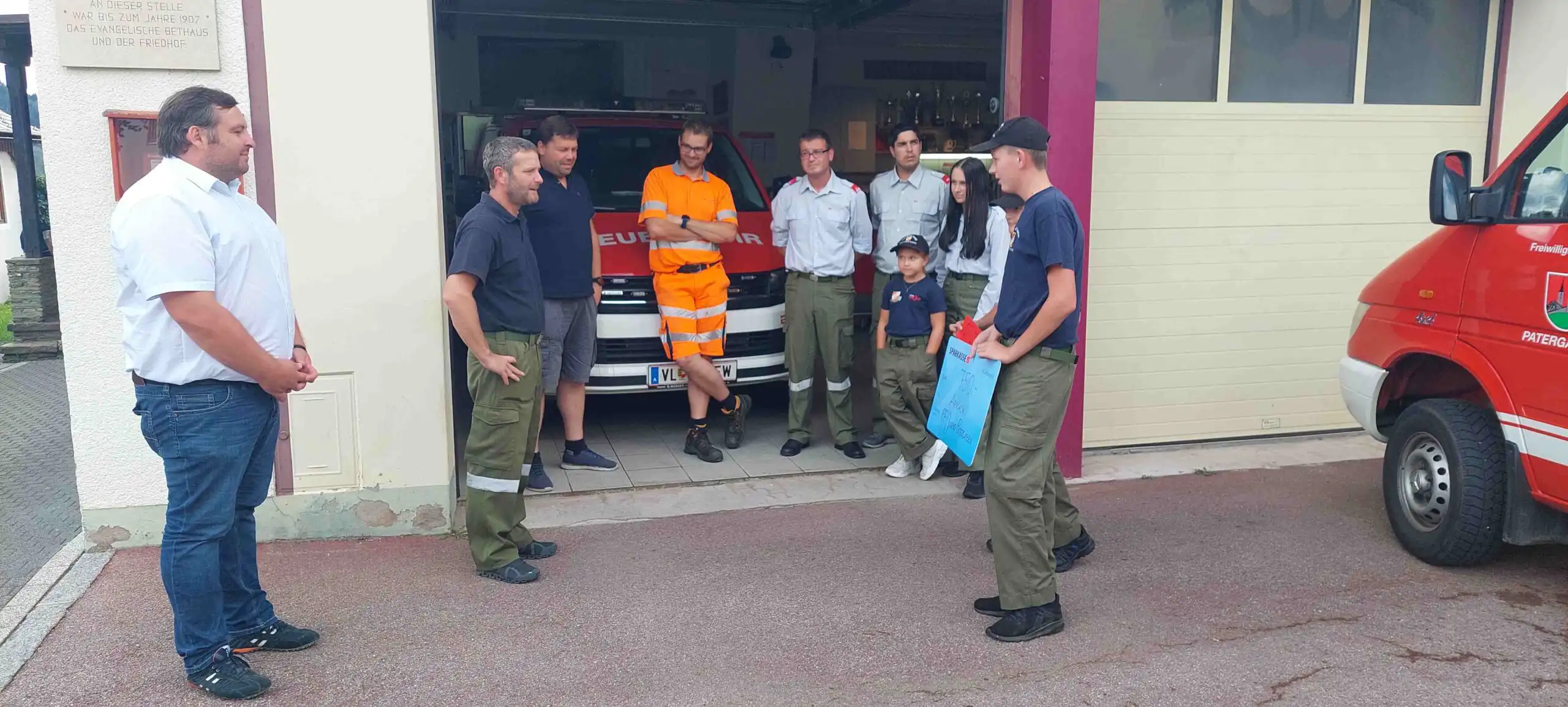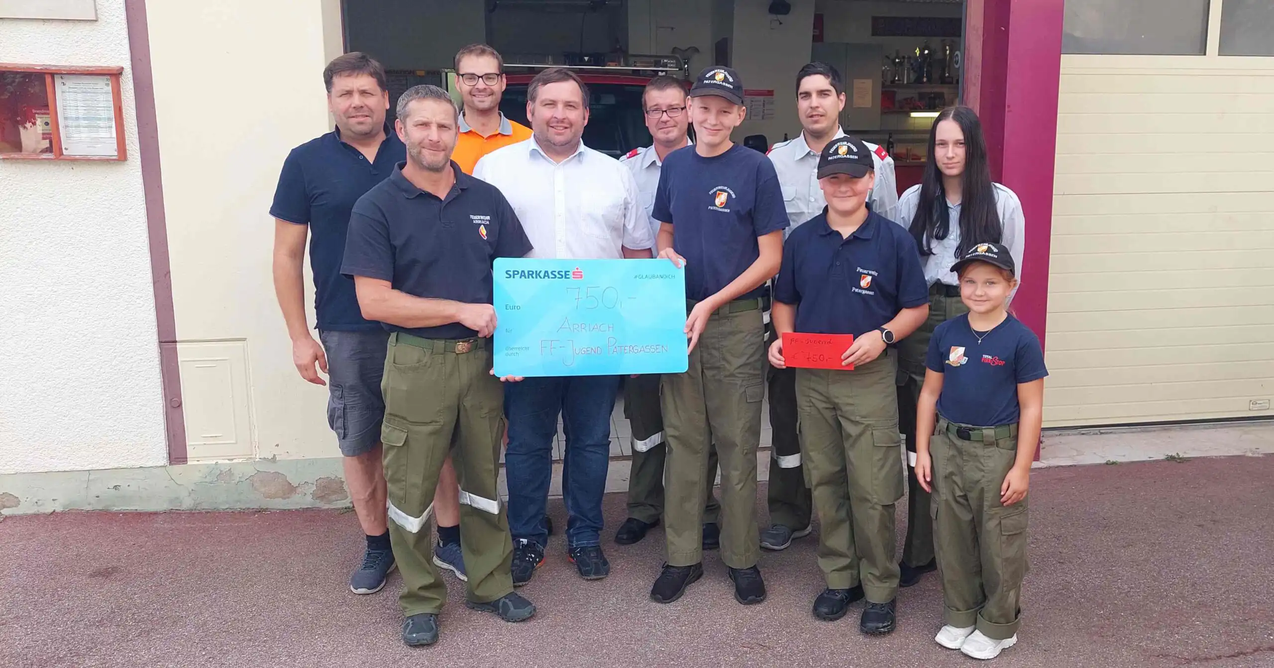Am Dienstag den 30.08.2022 fuhren die Jugendbetreuer mit den Gruppenkommandanten der Jugendfeuerwehr Patergassen und unserer jüngsten nach Arriach um die Geldspende zu übergeben. Nachdem wir das Rüsthaus, den Fuhrpark und die Gerätschaften der Freiwilligen Feuerwehr Arriach besichtigten durften wurde im Beisein von Hr. Bürgermeister Gerald Ebner; BI Friedrich Ebner und BM Heimo Rainer der Scheck und das Kuvert mit dem Spendengeld an den Kommandanten OBI Markus Müller übergeben. Alle Anwesenden sprachen der Jugendfeuerwehr Patergassen ihren Dank aus. Auch der Bürgermeister Gerald Ebner fand lobende Worte für die Gemeindeübergreifende Kameradschaft und Hilfsbereitschaft der Jugendfeuerwehr Patergassen.