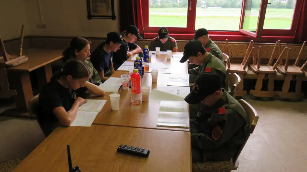 Während die eine Gruppe das Funken übte, wurde der einen Gruppe das Exerzieren beigebracht.