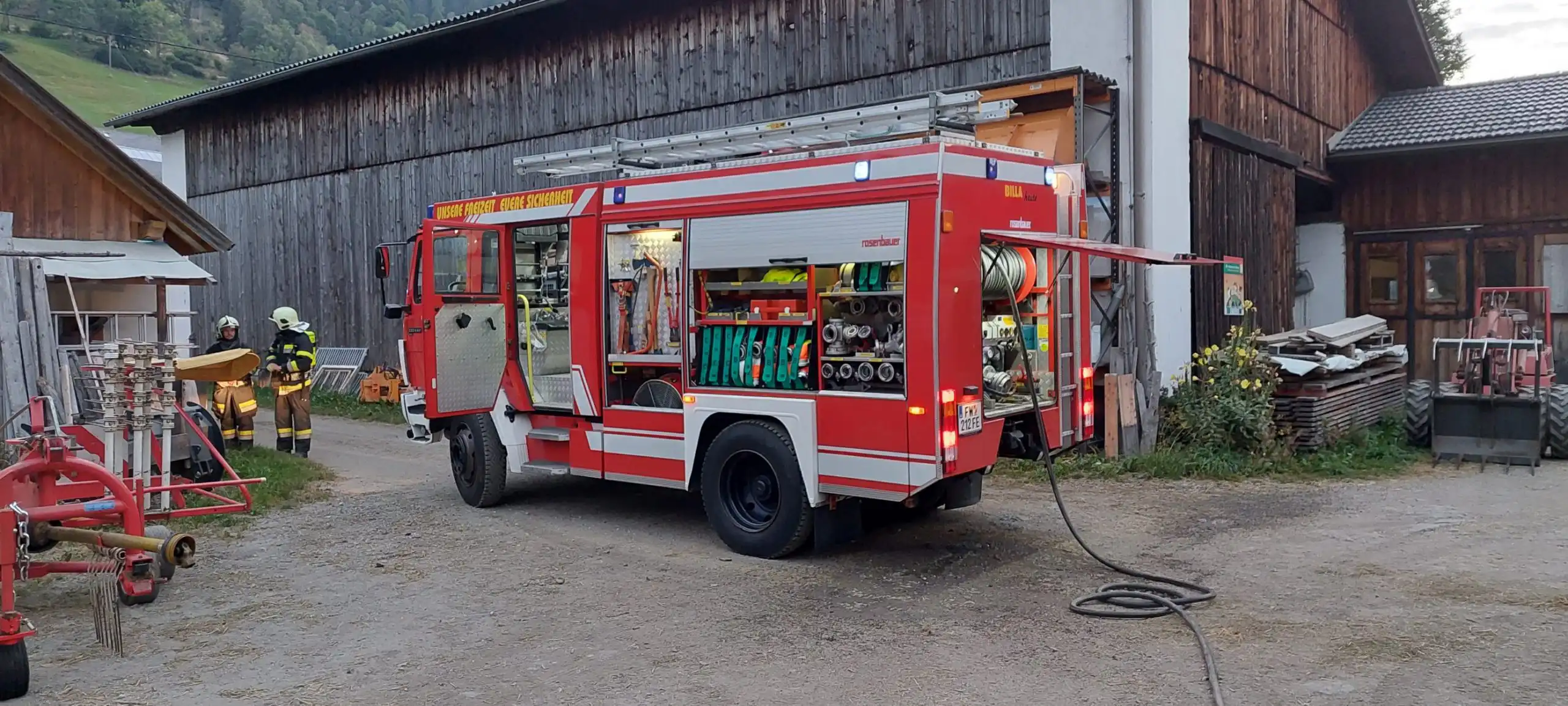 Am Sonntag den 12.09.2021 um 6:18 Uhr wurden die Kameraden der Freiwilligen Feuerwehr Patergassen zu einem Brandeinsatz in Mitterdorf gerufen. Beim Eintreffen der Feuerwehr versuchten die Besitzer des Hofes den Brandherd mittels Gartenschlauch und Wasserkübeln zu löschen. Aus noch unbekannter Ursache kam es in der Zubringerschnecke der Hackschnitzelheizung zu einem Brand. Der erste Löschangriff wurde mittels Hochdruckrohr durchgeführt. Danach konnte der Atemschutztrupp in das Hackschnitzellager vordringen um den Brandherd zu erörtern. Zusätzlich wurde von den Kameraden der Freiwilligen Feuerwehr Ebene Reichenau und Freiwilligen Feuerwehr Patergassen eine ca. 430m Lange Löschwasserversorgungsleitung von der Wasserbezugsstelle Gurk hergestellt. Duch das schnelle Eingreifen der Besitzer und der Feuerwehr konnte Schlimmeres abgewendet werden.