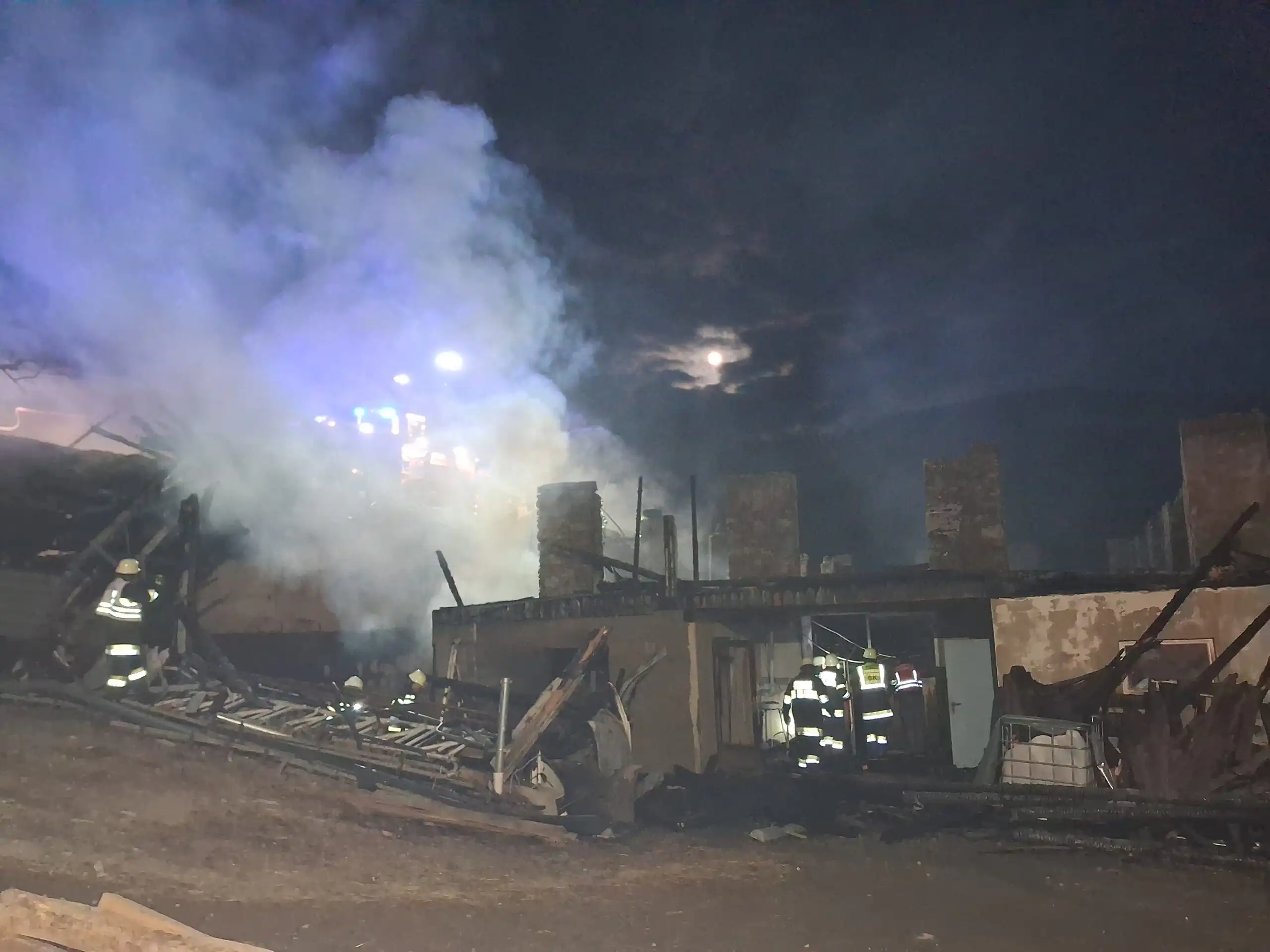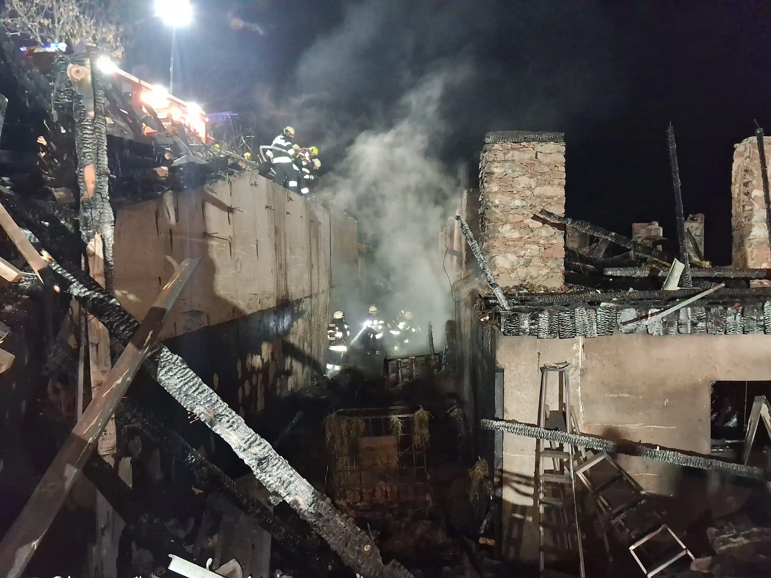Nach dem Eintreffen am Einsatzort wurde umgehend mit den Maßnahmen begonnen und im oberen sowie hinteren Bereich des Brandobjektes noch vorhandene Glut- und Feuernester bekämpft.