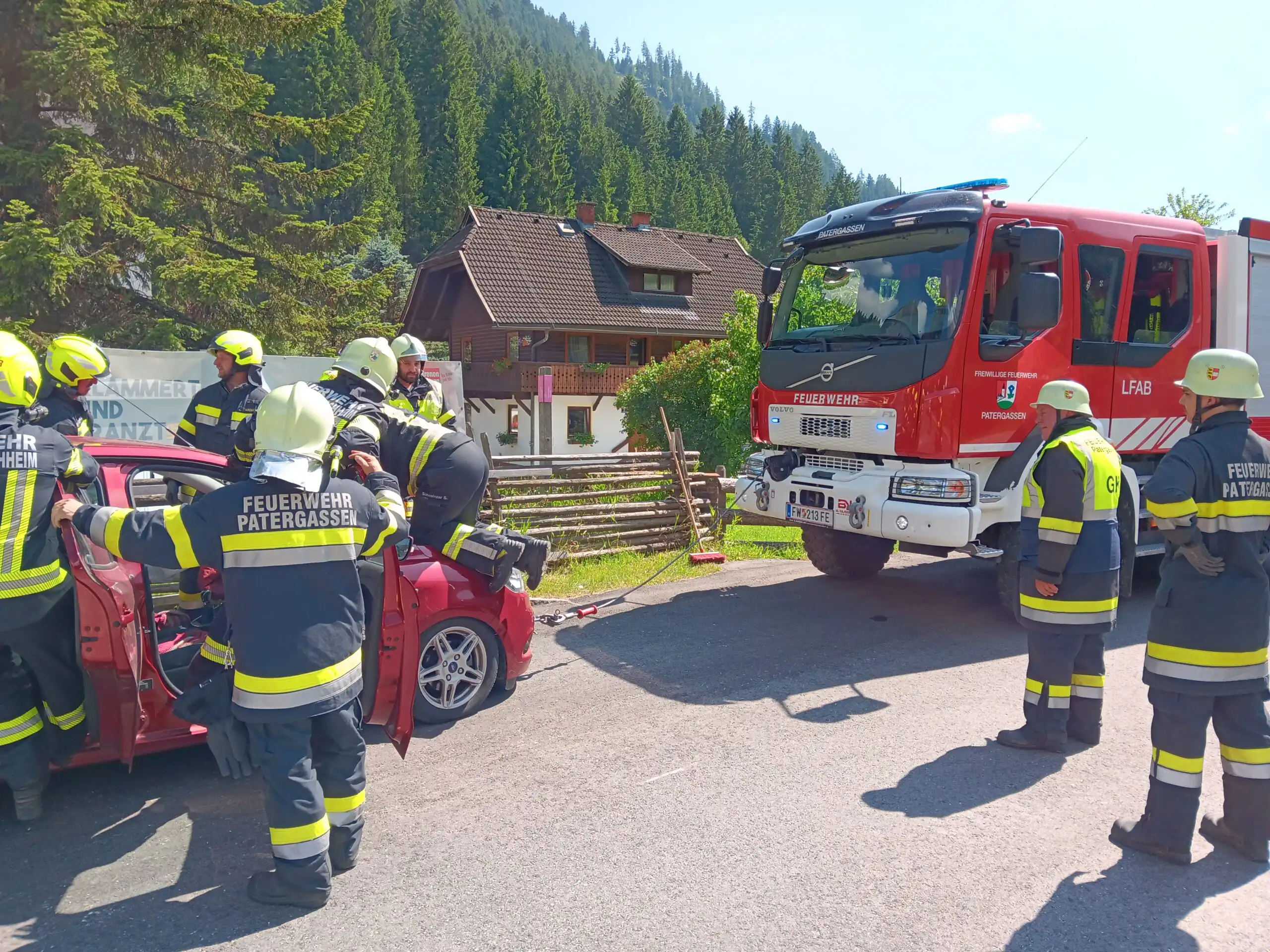 Am Mittwoch, den 18.06.2025, wurden die Kameradinnen und Kameraden der Freiwilligen Feuerwehr Patergassen um 15:01 Uhr per Sirenenalarm zu einem Verkehrsunfall nach Bad Kleinkirchheim gerufen. Laut Einsatzmeldung kam es auf Höhe des Hotels Trattlerhof zu einem Zusammenstoß zwischen einem LKW und einem PKW, bei dem der PKW-Lenker im Fahrzeug eingeklemmt wurde.
