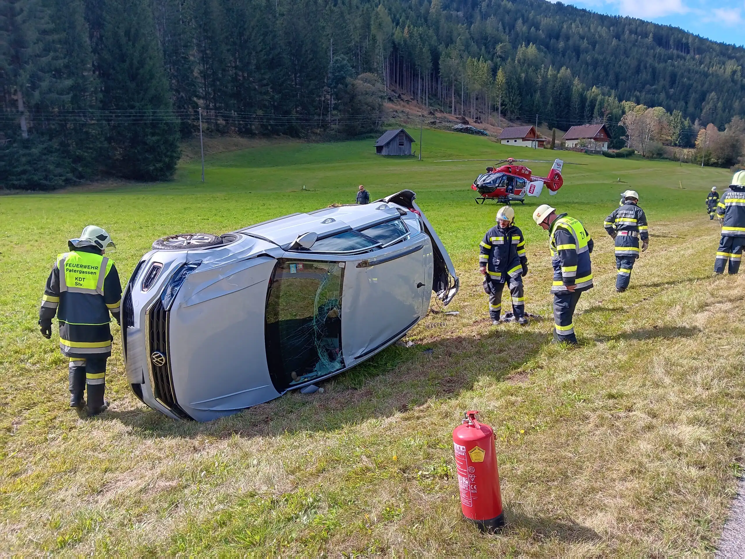 Am Sonntag den 29.09.2024 wurden die Kameradinnen und Kameraden der Freiwilligen Feuerwehr Patergassen zu einem Verkehrsunfall nach Gnesau gerufen. Laut Presseaussendung der Polizei kam ein Fahrzeuglenker wegen Sekundenschlafes auf die Gegenfahrbahn. Der entgegenkommende Fahrzeuglenker versuchte noch auszuweichen. Aufgrund dieses Ausweichmanövers kam er rechts von der Fahrbahn ab und Überschlug sich. Das Fahrzeug kam daraufhin in der Wiese auf der Fahrerseite zu liegen. Der Fahrzeuglenker und seine Begleiterin wurden von nachkommenden Personen aus dem Fahrzeug geborgen und den Sanitätern übergeben. Nachdem das Fahrzeug wieder auf die Räder gestellt und der zweite Unfallwagen per Seilwinde von der Fahrbahn gezogen wurde, konnten die Kameradinnen und Kameraden der Freiwilligen Feuerwehr Patergassen wieder in das Rüsthaus einrücken.