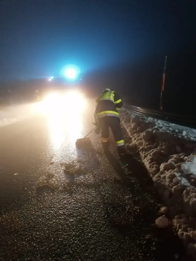 Desweiteren mußte die Strasse die durch das auslaufende Hydrauliköl verschmutzt wurde mittels Bindemittel gereinigt werden.