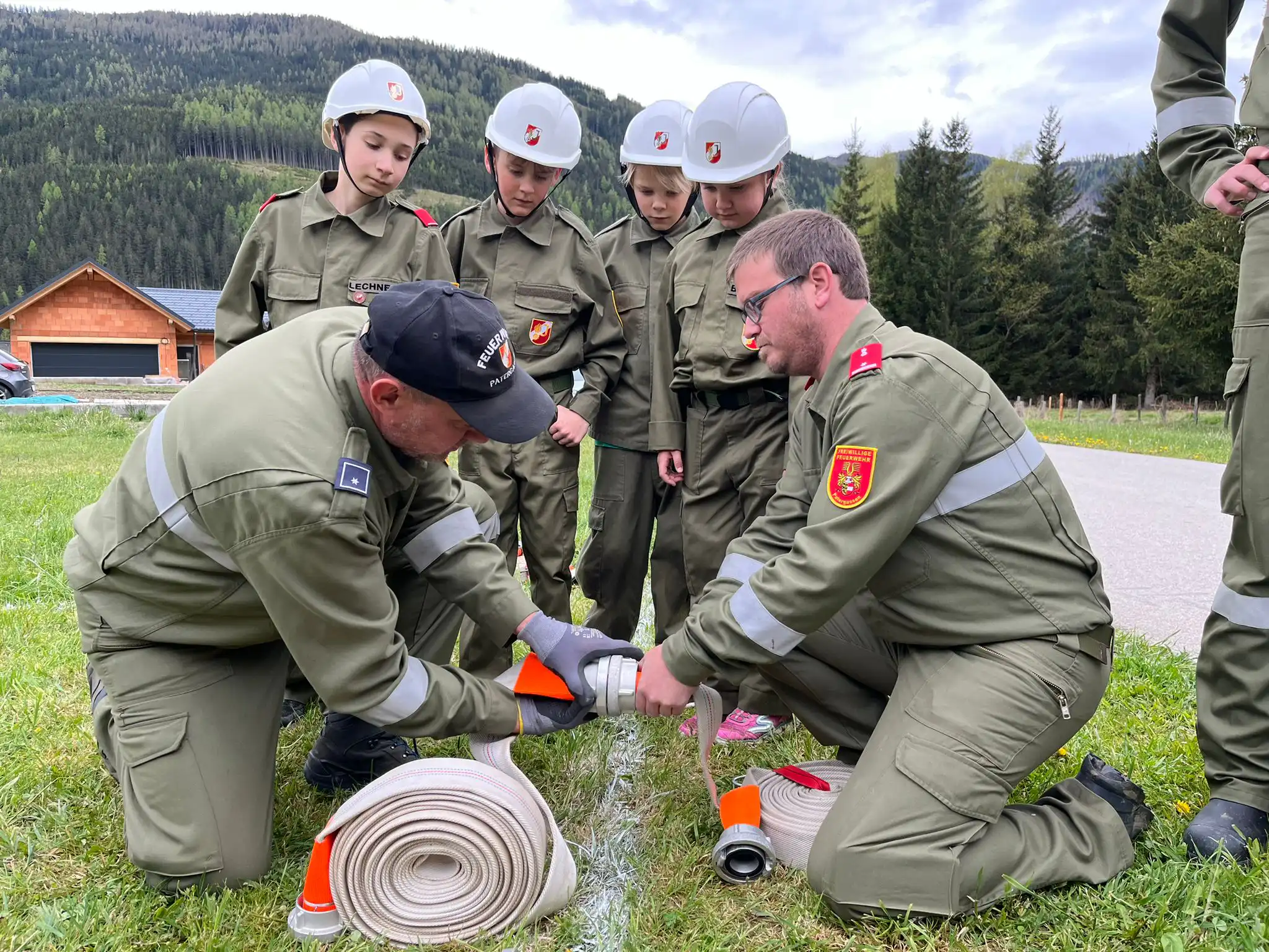 Wiederum eine Woche später trafen sich die Mitglieder der Jugendfeuerwehr Patergassen am Freitag den 17.05.2024 zu einer gemeinsamen Übung mit den Wettkampfteilnehmern. Da der Parcours aber vom Regen etwas aufgeweicht war, wurde kurzerhand ein Etappentraining angeordnet. Eine Gruppe übte das Kuppeln an der Festkupplung und eine Gruppe das Ablegen am Gerätegestell.