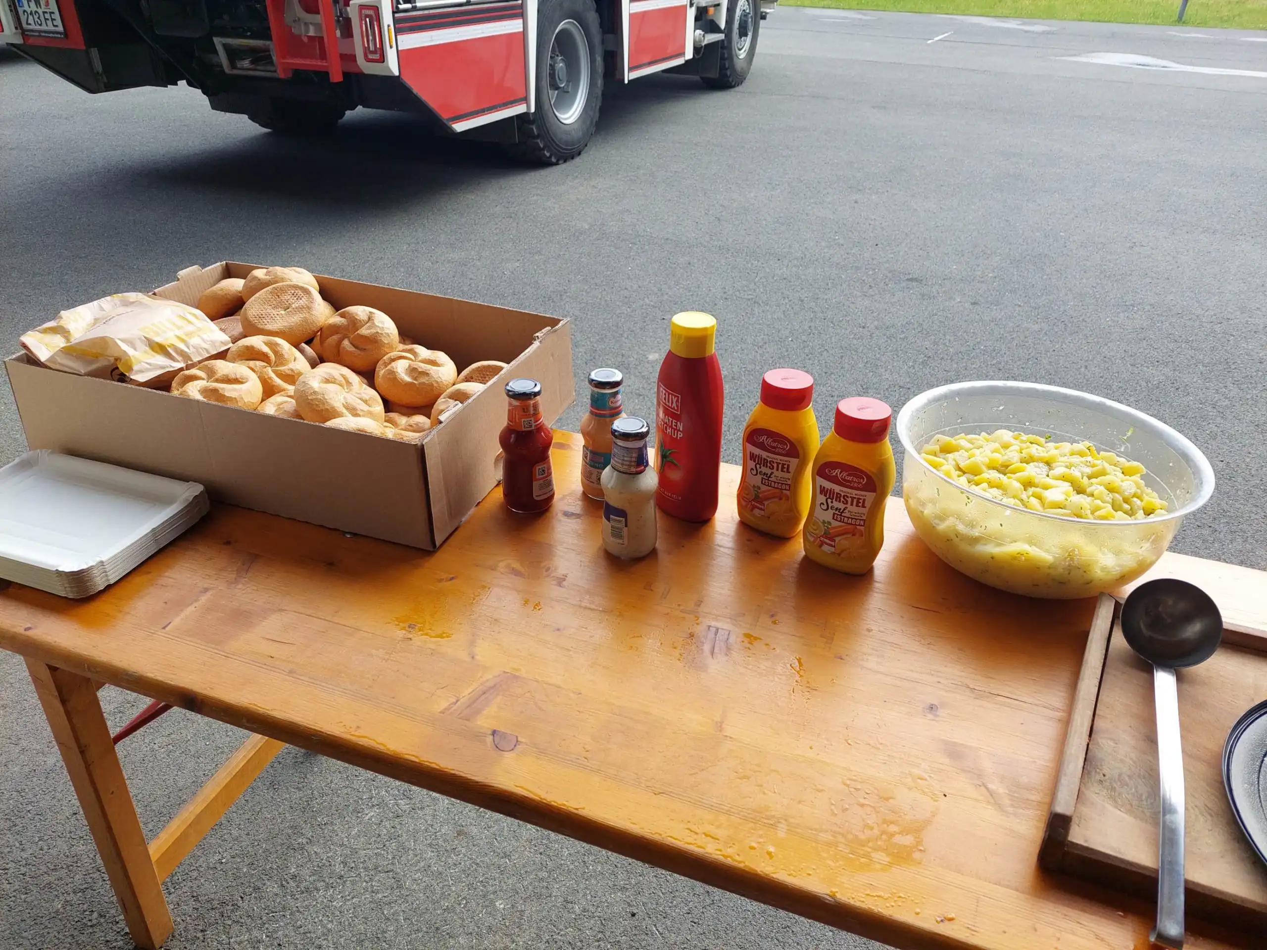 Nach dieser Übung durfte das leibliche Wohl auch nicht zu kurz kommen. Die Jugendfeuerwehr und die Ausbildner wurden vom Grillmeister Hannes Schiestl mit Riesengrillwürsten und Semmel; Kartoffelsalat; Ketchup; Senf und weiteren Saucen verwöhnt.