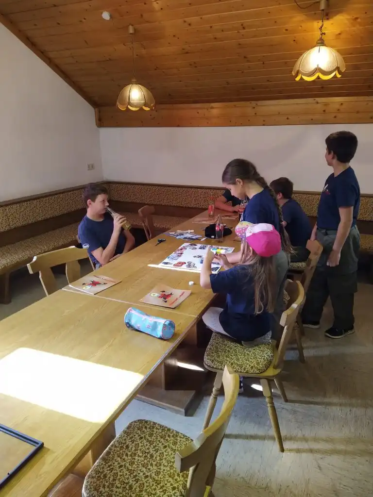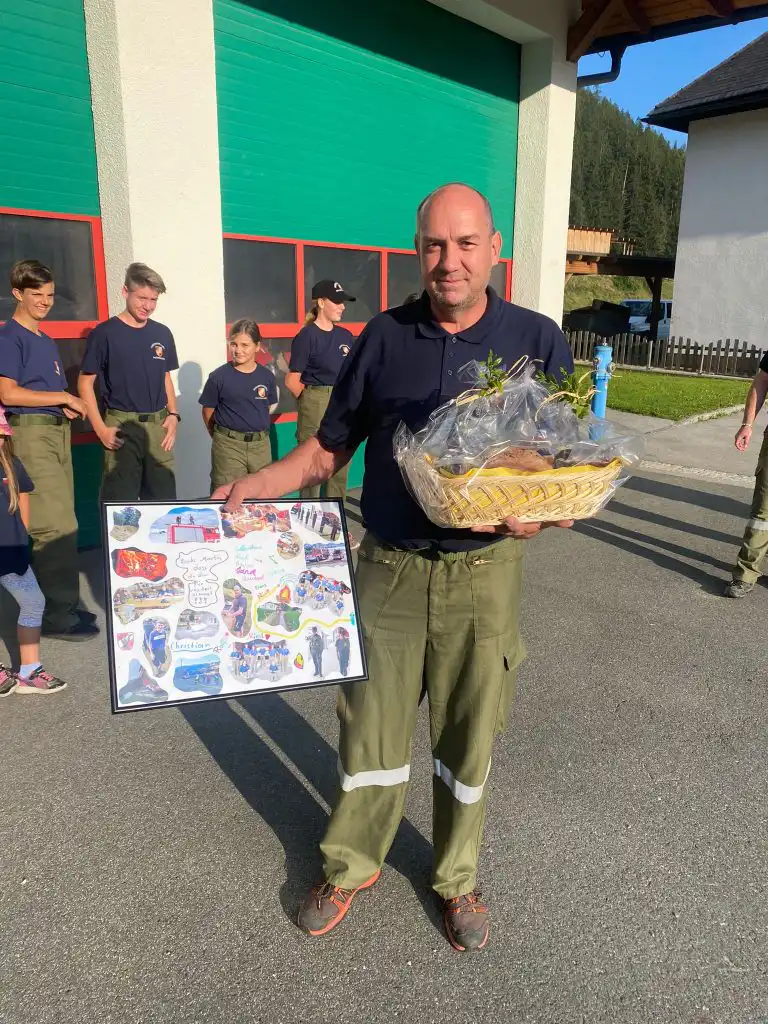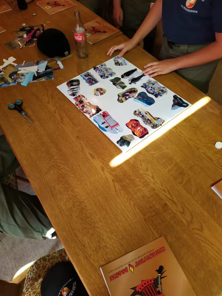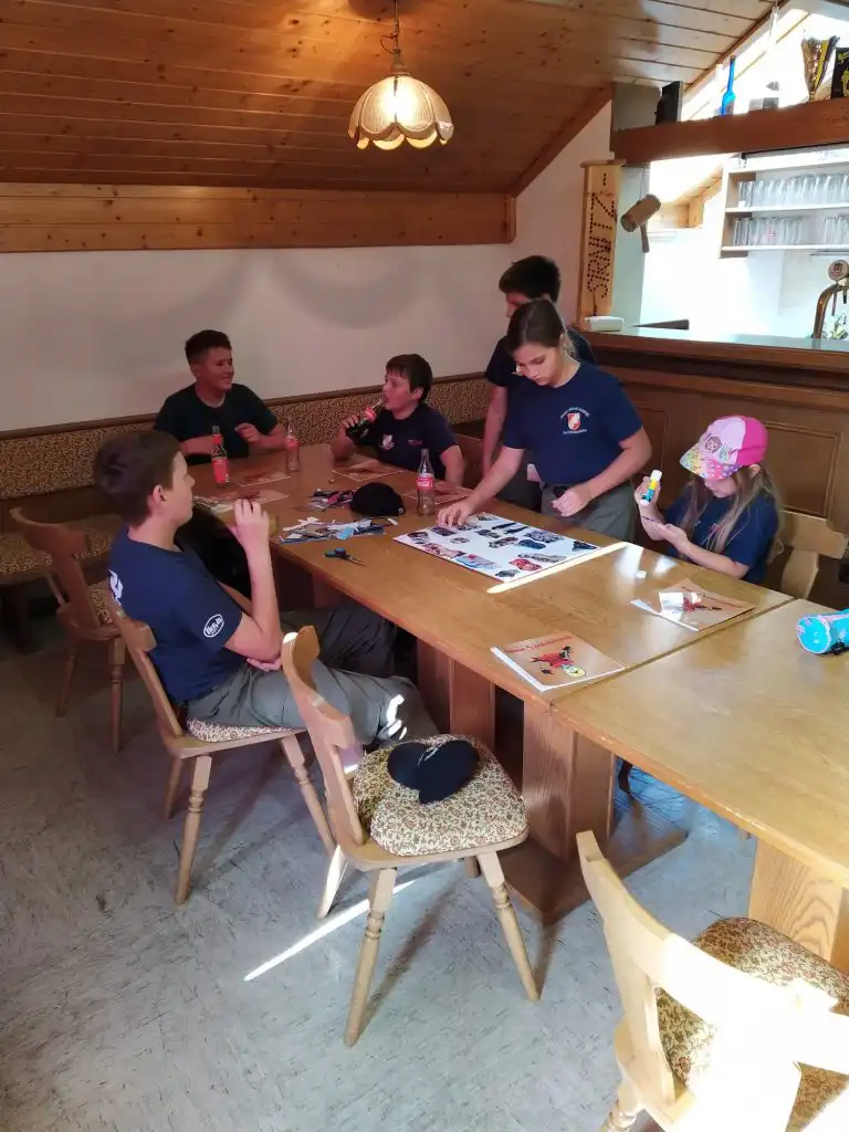 Anstatt sich auf den Wissenstest vorzubereiten arbeiteten die Jugendlichen an einen Geschenk das am Ende der Übung dann überreicht wurde.