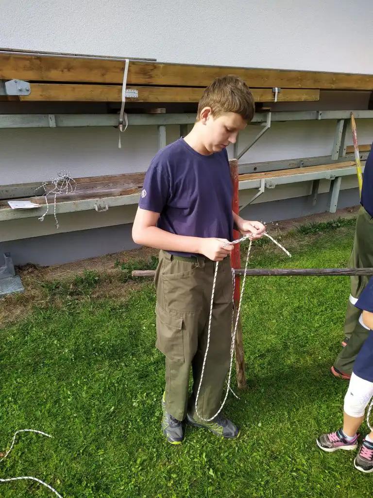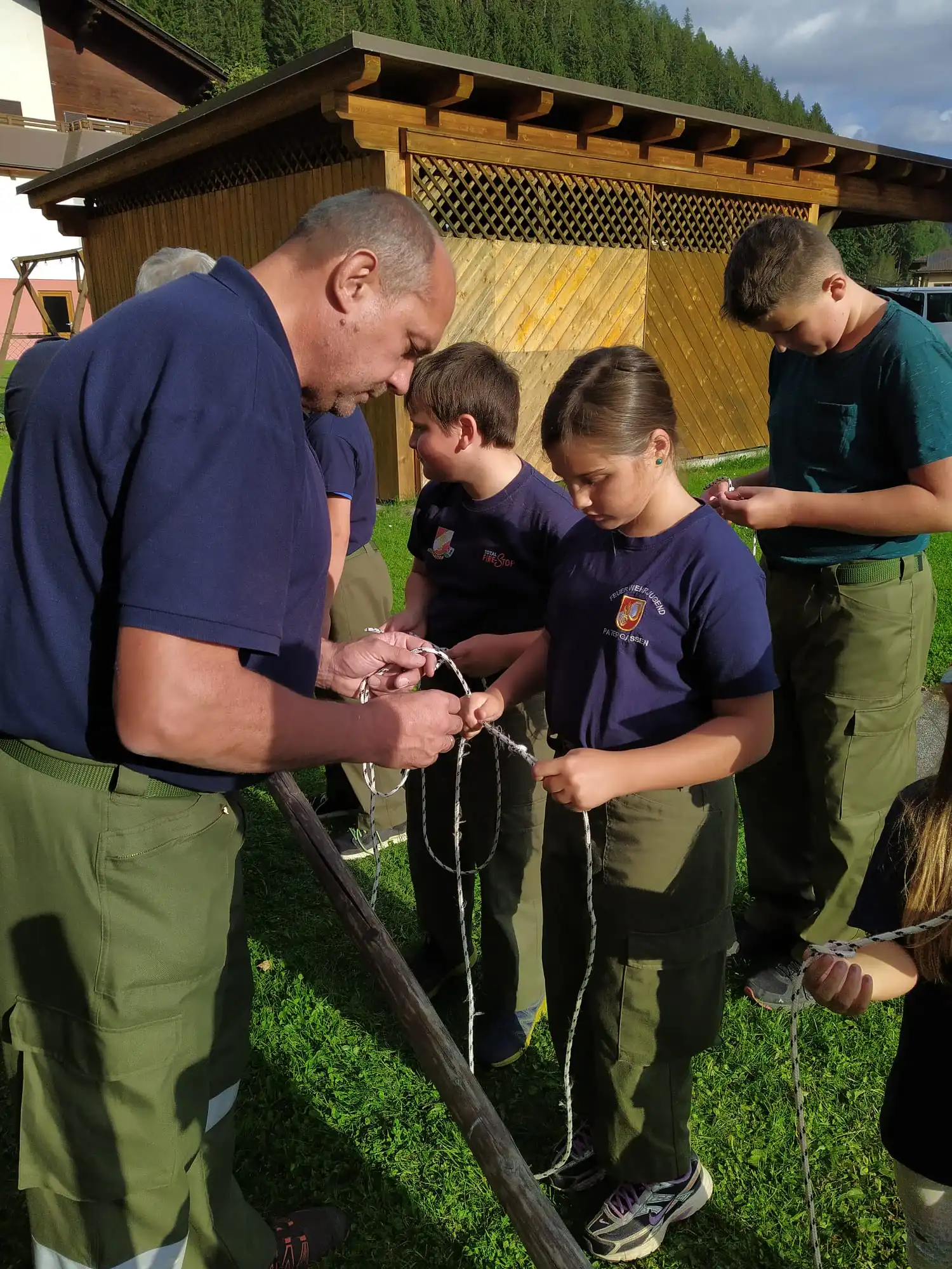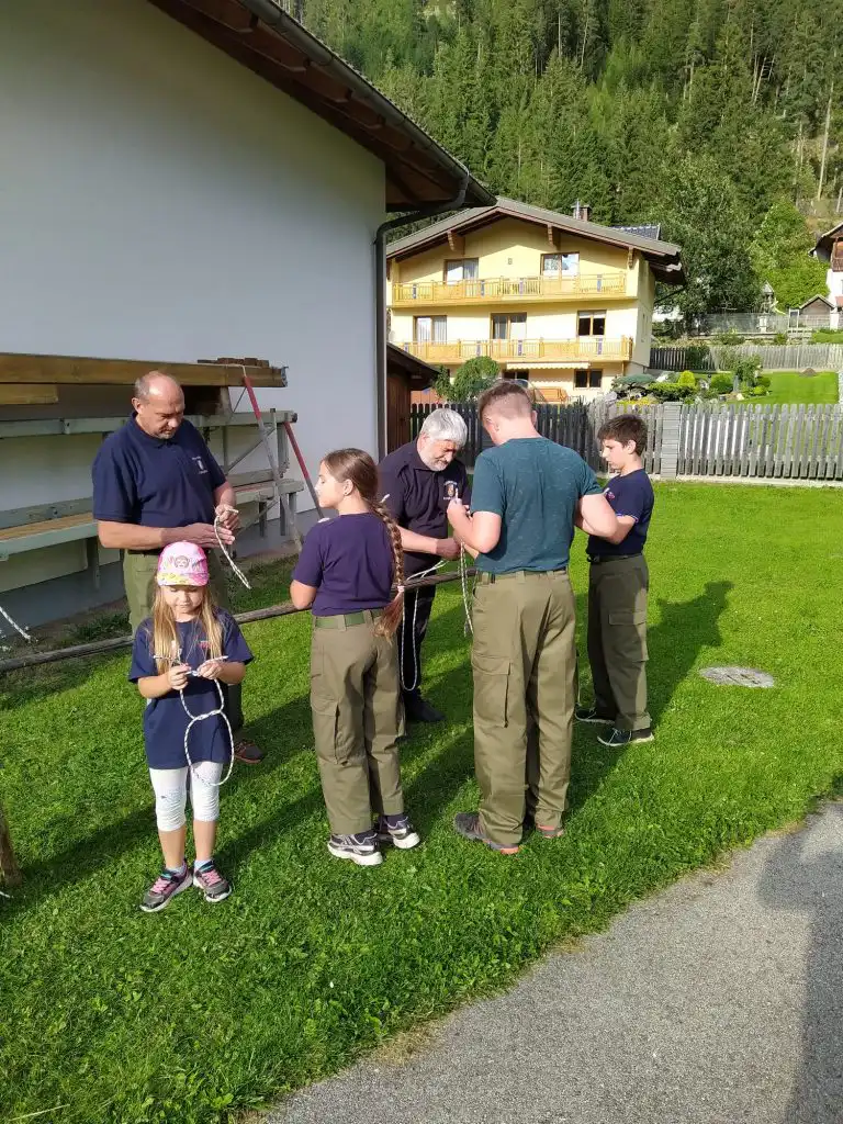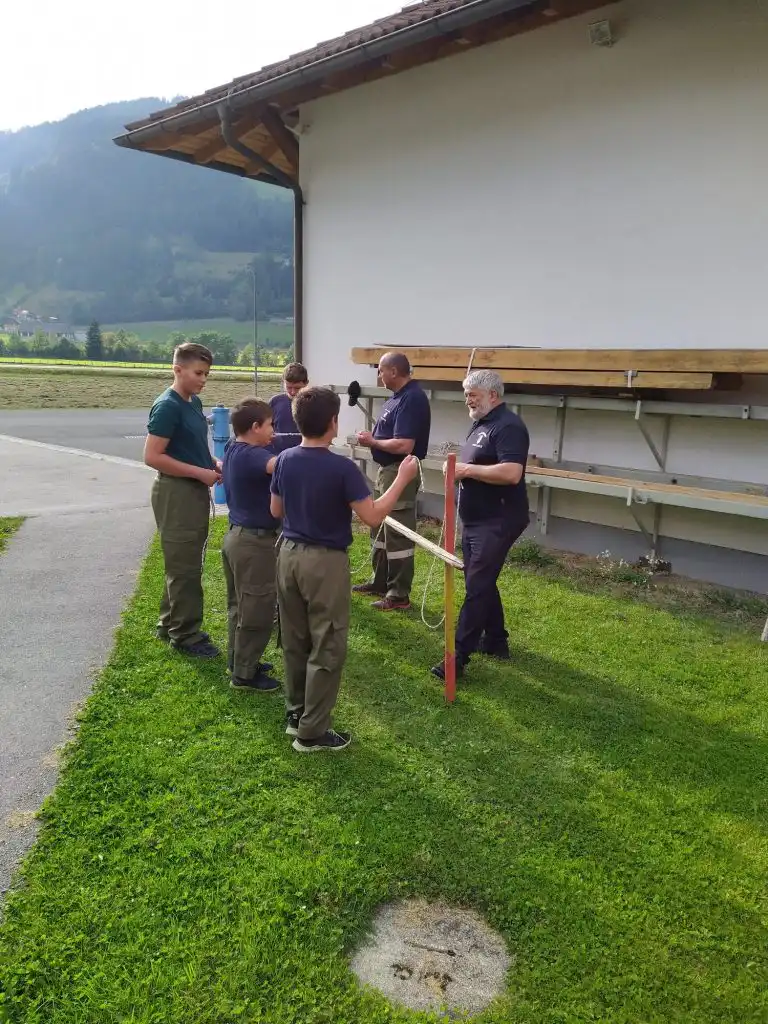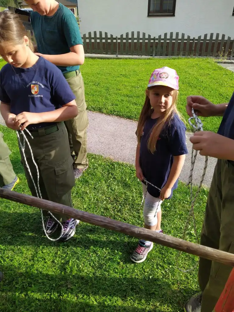 Ich und HFM Ragossnig Helmut durften die Jugendlichen ,die in ihre zwei Gruppen eingeteilt waren wieder bei der Knotenkunde unterstützen.