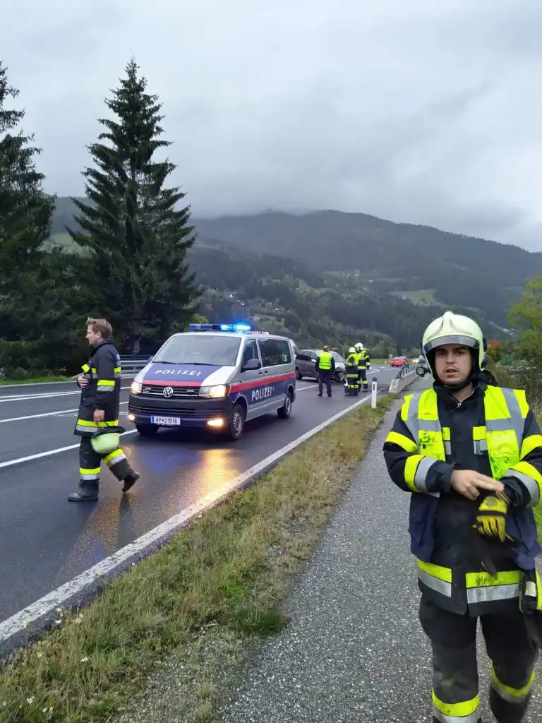 Am 4.10.2020 gegen 18:00 Uhr wurde mittels Sirenenalarm zu einem Verkehrsunfall im Kreuzungsbereich zur B 88 auf der Turracher Bundesstrasse gerufen.