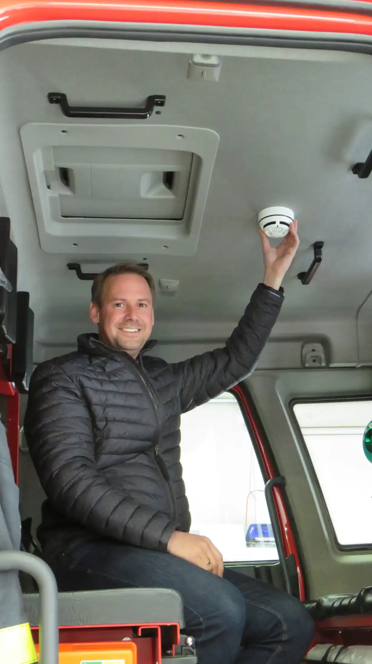 Um auch den Fuhrpark der Feuerwehr zu überwachen wurden in den Fahrzeugen Funk-Brandmelder installiert. Obwohl die Fahrzeuge mittels Hauptschalter von der Energieversorgung getrennt sind, befinden sich darin immer noch spannungsführende Teile wie z.B. Ladestationen der Funkgeräte die bei einem technischen Defekt einen Brand auslösen könnten und somit das Fahrzeug zerstört werden kann.