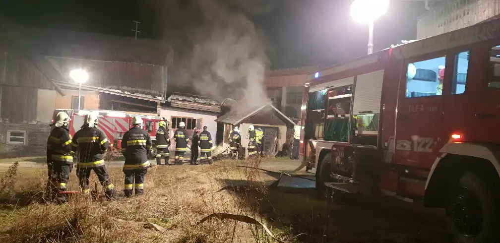 Eine kleine Holzhütte stand in Vollbrand. Tank Patergassen konnte mit 3 Atemschutzträgern den Brand aber sofort bekämpfen.