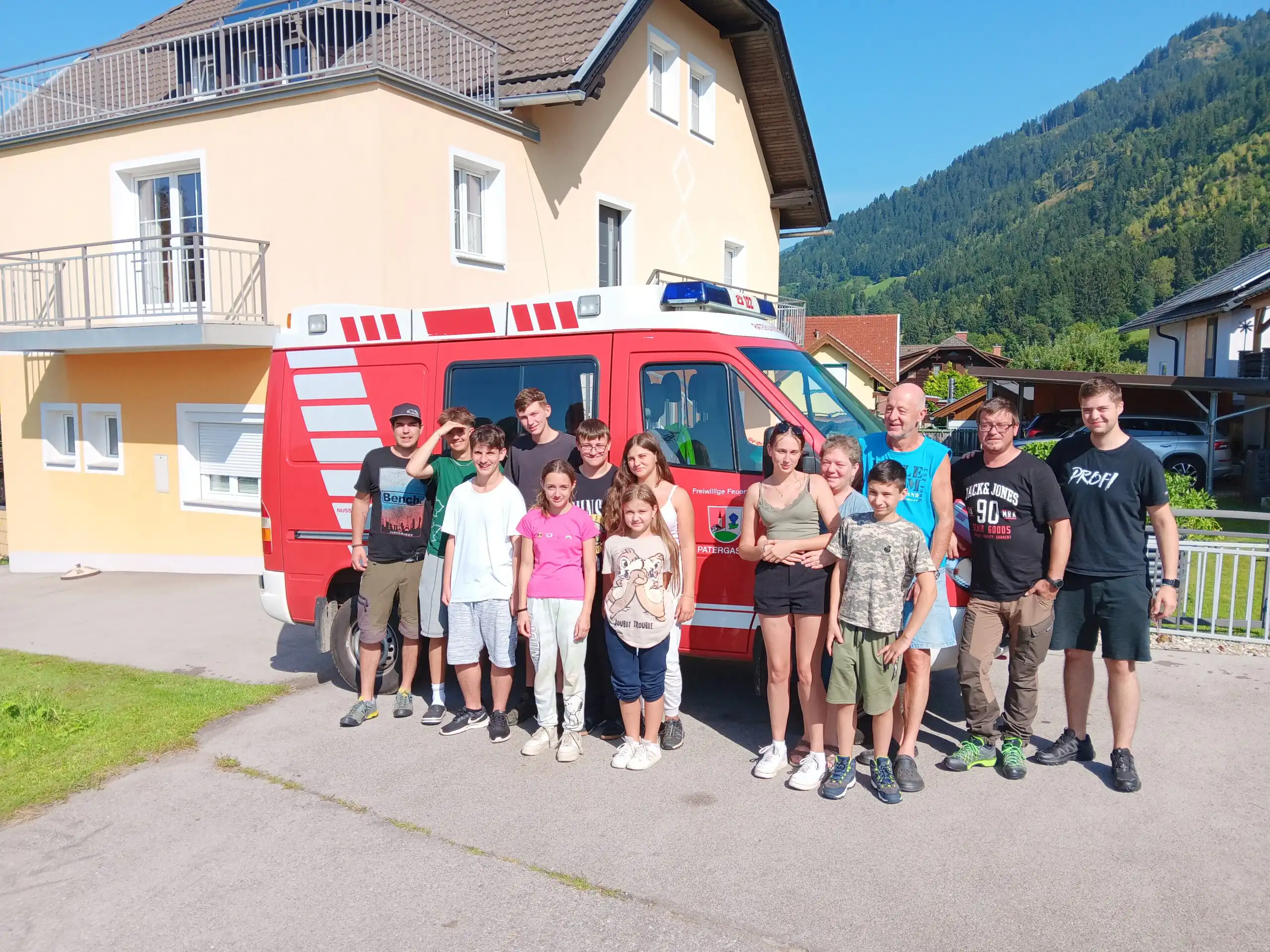 Am Freitag den 16.08.2024 trafen sich die Mitglieder der Feuerwehrjugend Patergassen zum Zelten. Mit dabei waren auch Elena, Michael, Christian und Sebastian. Da sich der Zeltplatz in der Wiederschwing nicht eignete, musste kurzerhand ein Ersatzplatz gesucht werden. Gesagt, getan. Die Familie Graimann, wohnhaft in Matzelsdorf, stellten uns den unteren Bereich ihres ca.2000 m² großen Grundstücks zur Verfügung. Nachdem die Zelte aufgebaut waren, wurde die Feuerschale aktiviert und etwas zum Essen auf den Grill gelegt. Die Familie Graimann stellte uns diese zur Verfügung. Auch das benötigte Holz wurde von ihnen bereitgestellt.